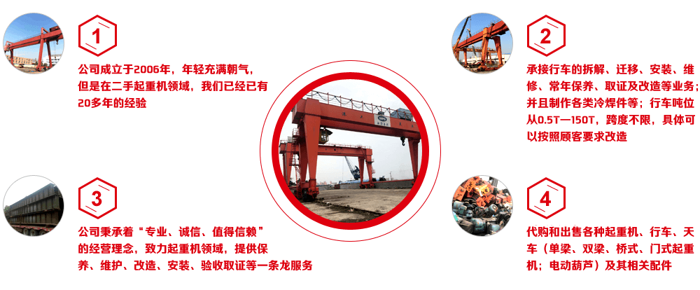 上海礦升起重設(shè)備有限公司位于上海市寶山區(qū)—中國(guó)的鋼鐵基地,公司成立于2006年,年輕充滿朝氣,但是在二手起重機(jī)領(lǐng)域,我們已經(jīng)已有20多年的經(jīng)驗(yàn)。我們專業(yè)經(jīng)營(yíng)二手起重機(jī)及其相關(guān)配件。公司秉承著“專業(yè)、誠(chéng)信、值得信賴”的經(jīng)營(yíng)理念,致力起重機(jī)領(lǐng)域,提供保養(yǎng)、維護(hù)、改造、安裝、驗(yàn)收取證等一條龍服務(wù)。